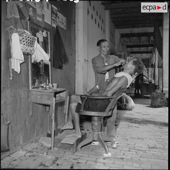 Le coiffeur dans la rue à Phnom Penh.