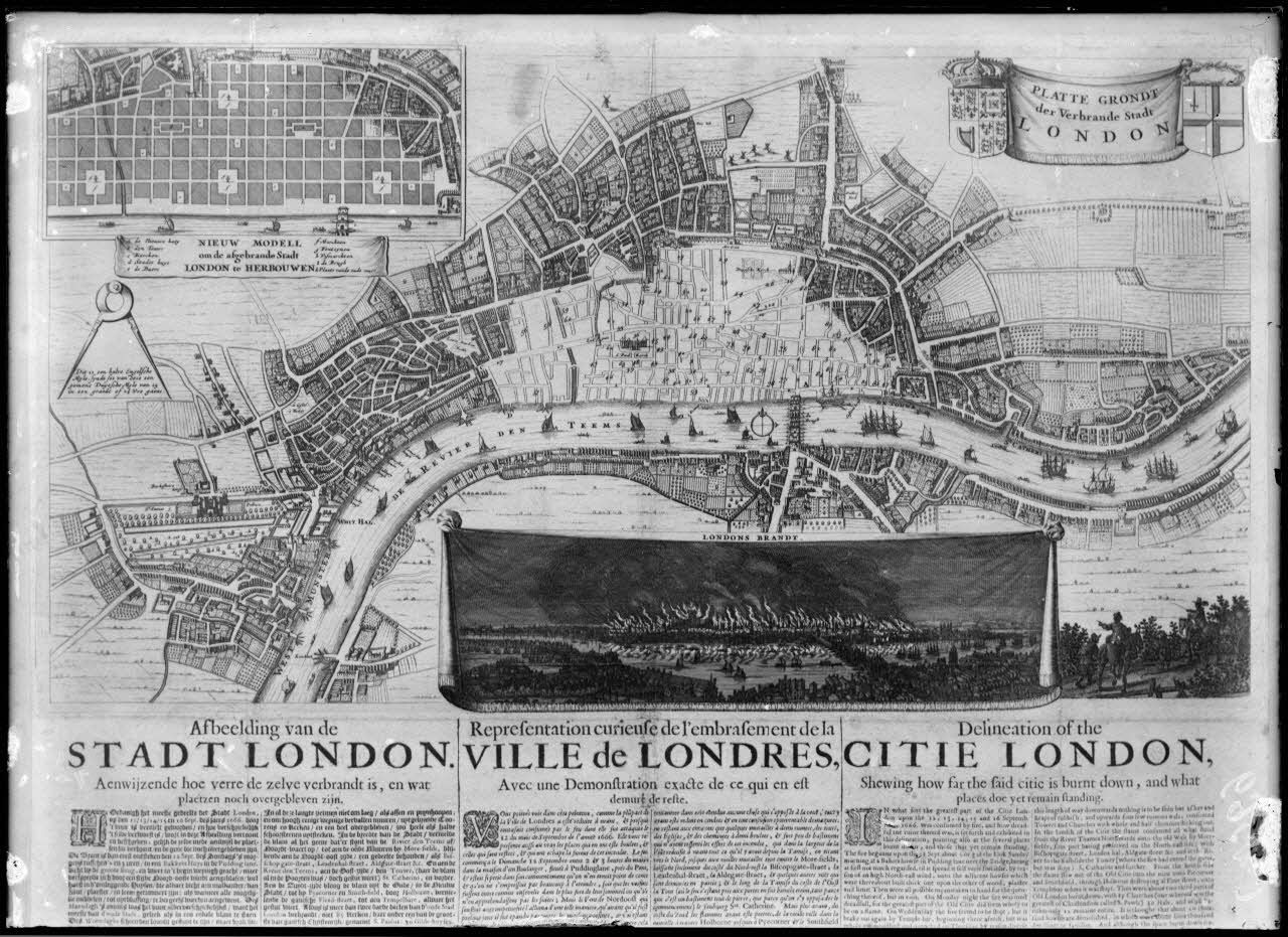 Note : le Grand incendie de Londres est un violent incendie qui ravage le centre de la ville de Londres du dimanche 2 septembre au mercredi 5 septembre 1666. Les flammes ravagent la Cité à l'intérieur du mur romain. Il brûle treize mille deux cent maisons, quatre vingt sept églises paroissiales, la cathédrale Saint-Paul, et la majorité des bâtiments publics de la Cité.