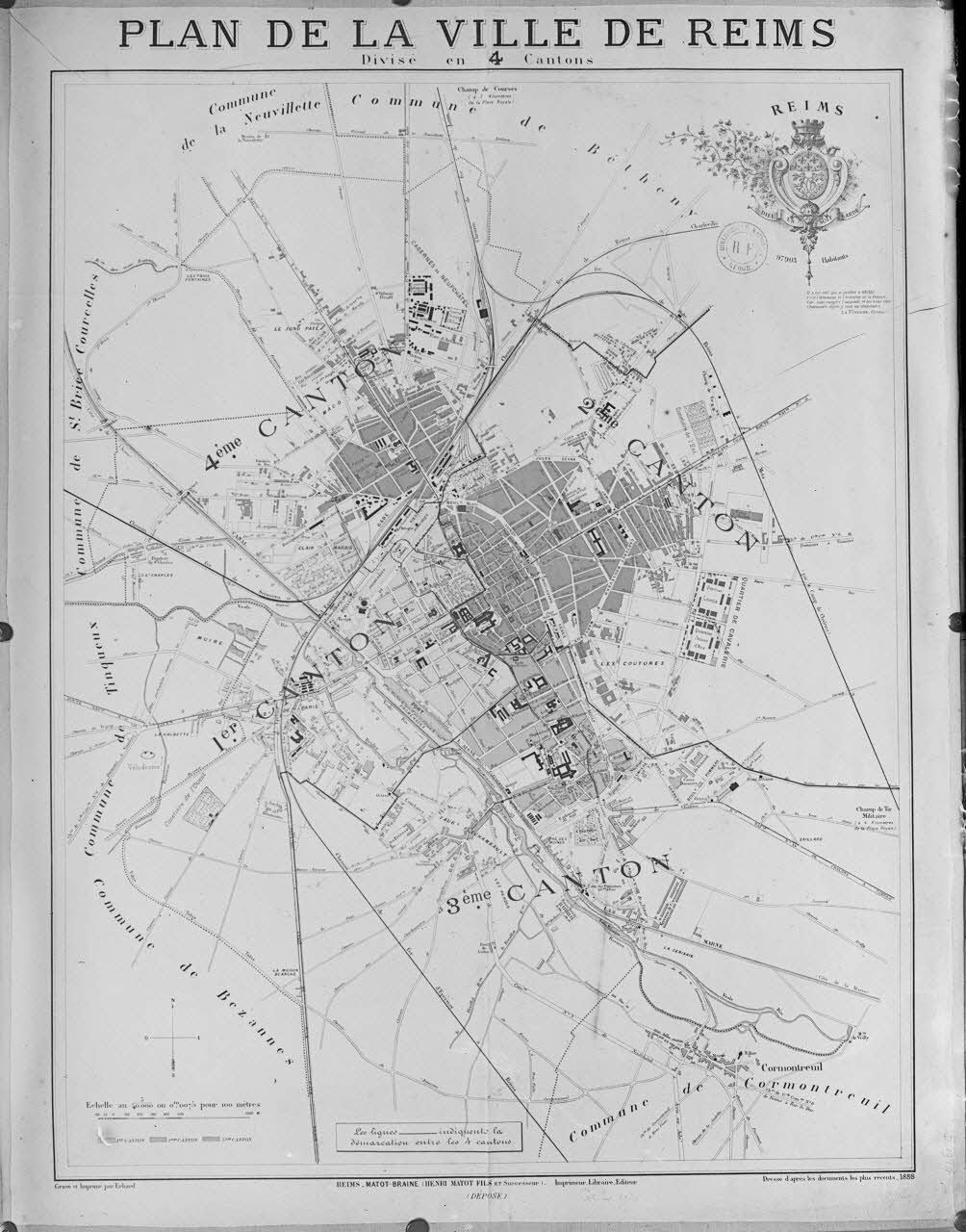 Plan de Reims pour Beaux-Arts. / Reims. Plan de Reims divisée en quatre cantons. [légende d'origine]