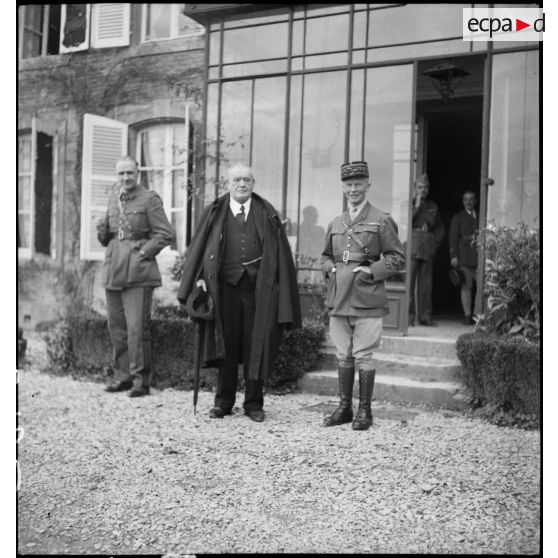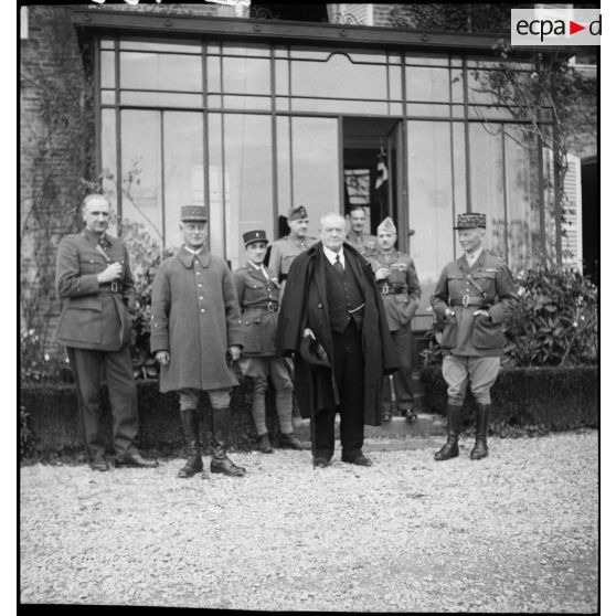 Photographie de groupe d'autorités civiles et militaires dont le général d'armée Huntziger.
