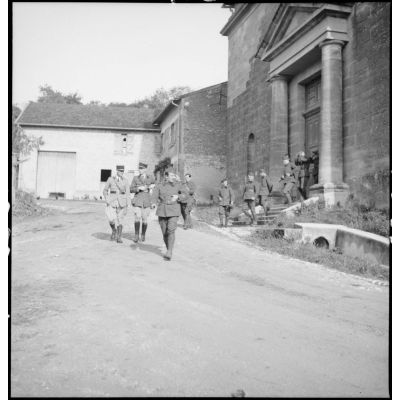 Plan général de soldats de la 2e armée qui marchent dans une rue.