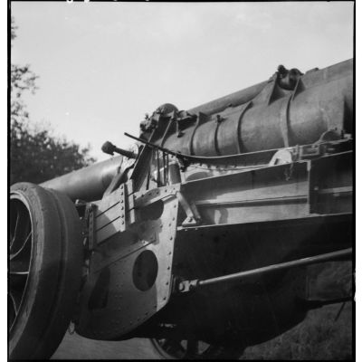 Détail de l'affût et le tube d'un canon de 145/155 mm M1916.