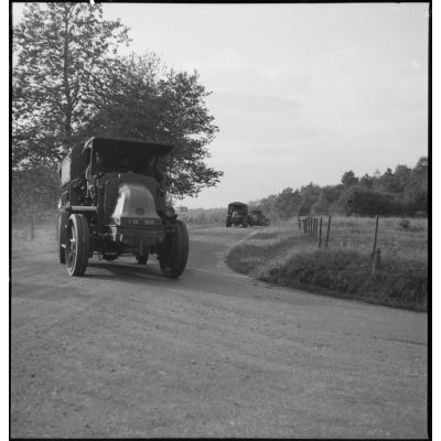 Des canons de 145/155 mm M1916 sont remorqués sur la route par des Latil TAR de la 2e armée.