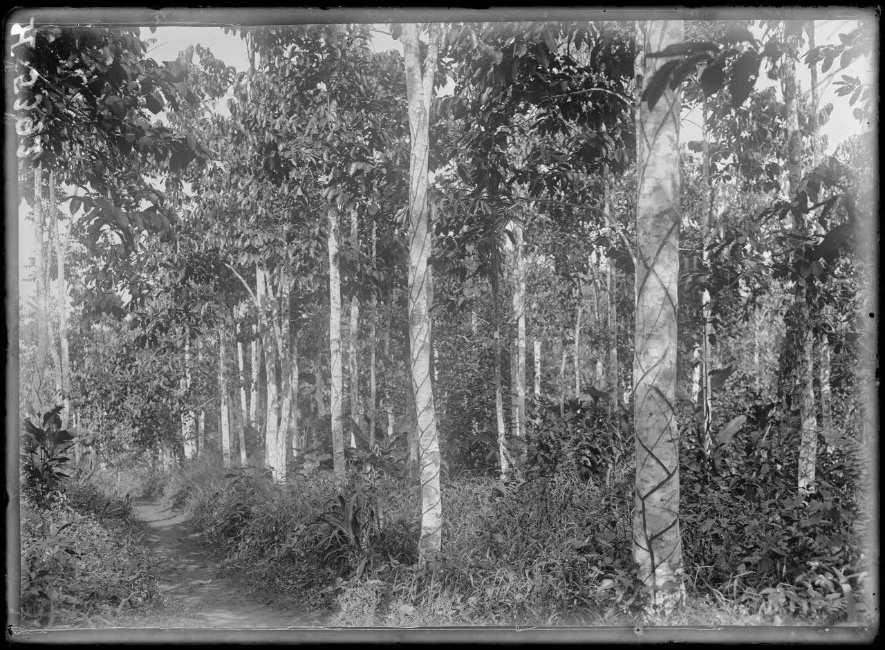 Plantation de l'Hermannshof. Rangée de caoutchoutiers. [légende d'origine]