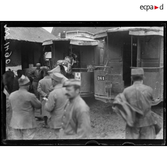 - des soldats, parmi lesquels des tirailleurs sénégalais, sont de corvée de soupe et amènent la soupe en première ligne ;