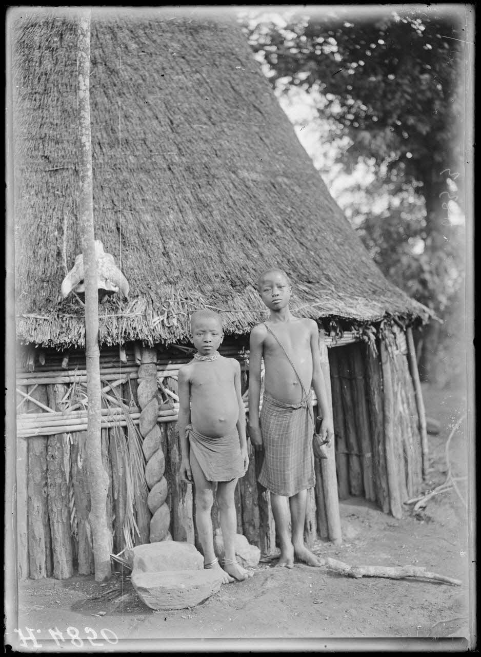 A Mbouroukou, il photographie un chef Mbo et sa famille, tous vêtus à l'européenne, ainsi que des habitants.
