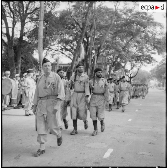 Célébration de l'Aïd el-Seghir par des goumiers marocains à Lang Son. Défilé du 14 juillet à Lang Son.