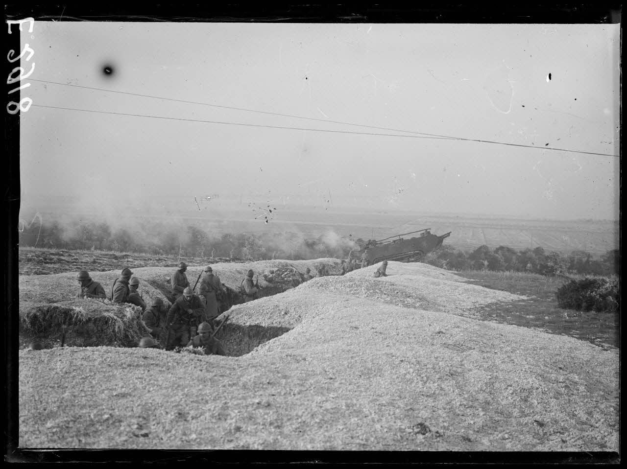 - Poivres (Aube, près de Mailly, 31/01/1918, E 2907 à E 2918, E 2931) manoeuvres d'infanterie en liaison avec les tanks.