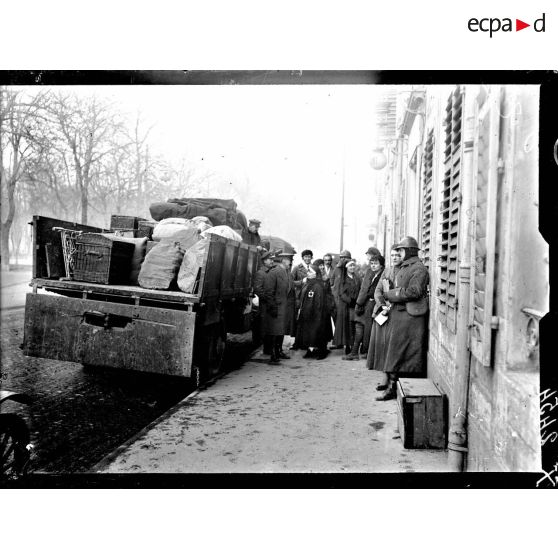 Nancy (Meurthe-et-Moselle). Devant le dispensaire américain. Chargement d'un camion.