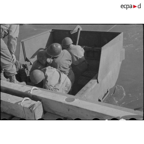 - des ponts flottants sur le Rhin à Maximiliansau et Germersheim, construits par les unités du Génie de la 1re armée et qui permettent aux convois de véhicules légers et lourds de franchir le fleuve (L4 à L24 et L31 à L33),