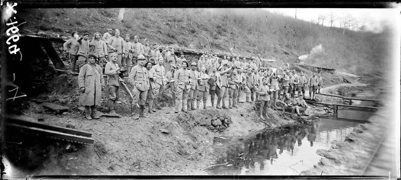 Pont de Metz près de Limey (Meurthe-et-Moselle). Groupe de la compagnie franche du 283e régiment d'infanterie. [légende d'origine]