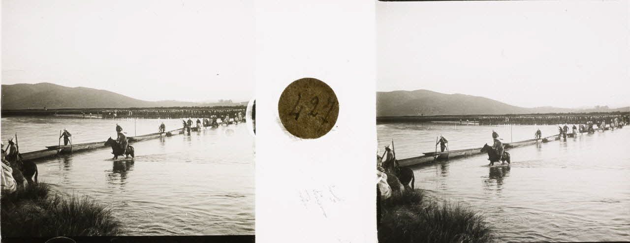 Passage d'une rivière à gué.