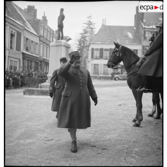 Visite du général Corap commandant la 9e armée dans un village du nord-est de la France.