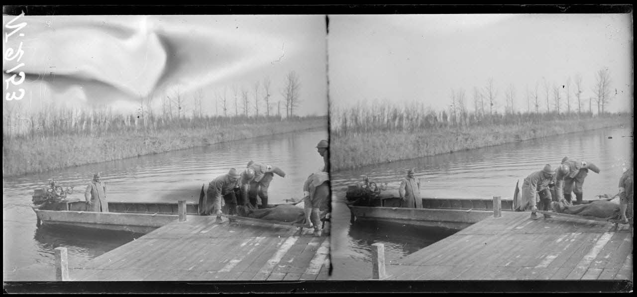 - A Gernicourt, un canot-ambulance circule sur le canal de l'Aisne ; il accoste ensuite à Pontavert et débarque un blessé chargé dans un camion de l'American Ambulance Field Service (AAFS).