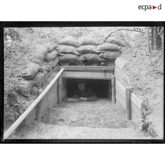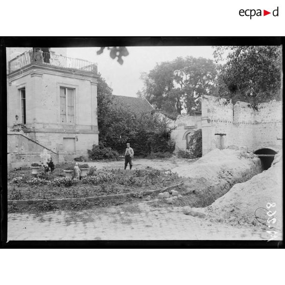 Château de Pontavert, le général Duplessis à l'entrée puis à la fenêtre de son logement souterrain.