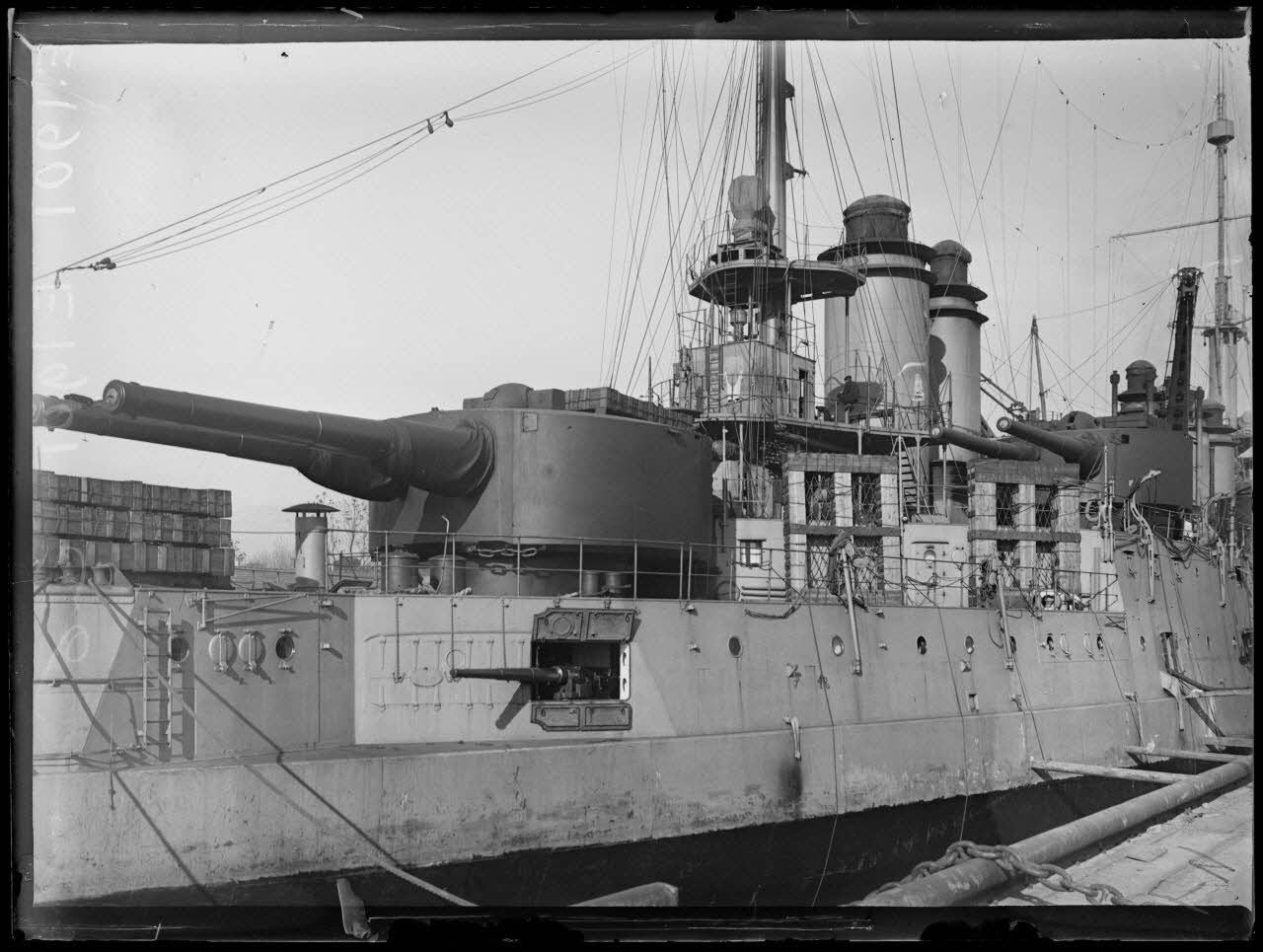 Port de Toulon. Cuirassé Dantoy. Pièces de 305. [légende d'origine]