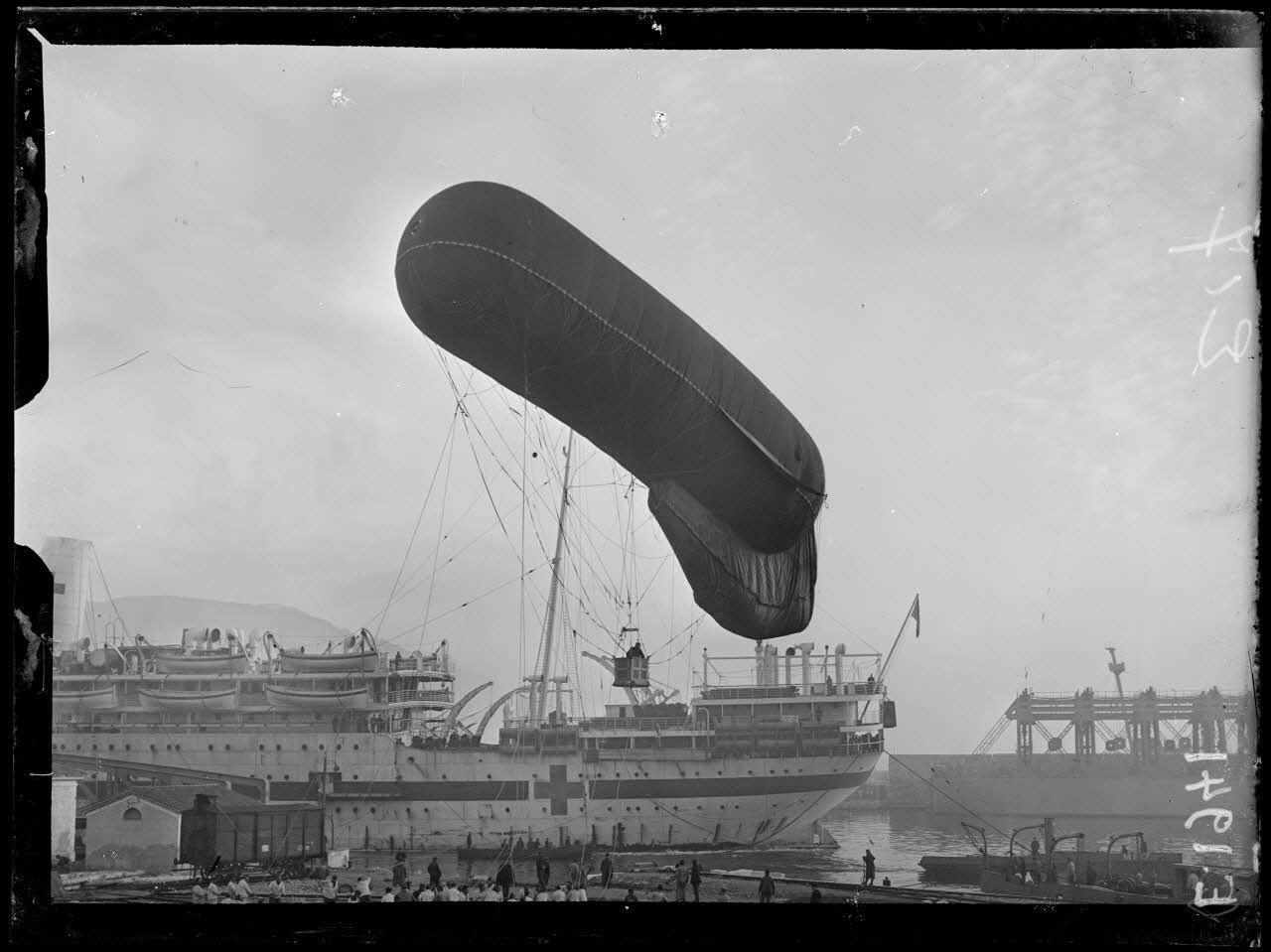 Port de Toulon - Sortie du ballon d'observation pour la reconnaissance des sous-marins.
