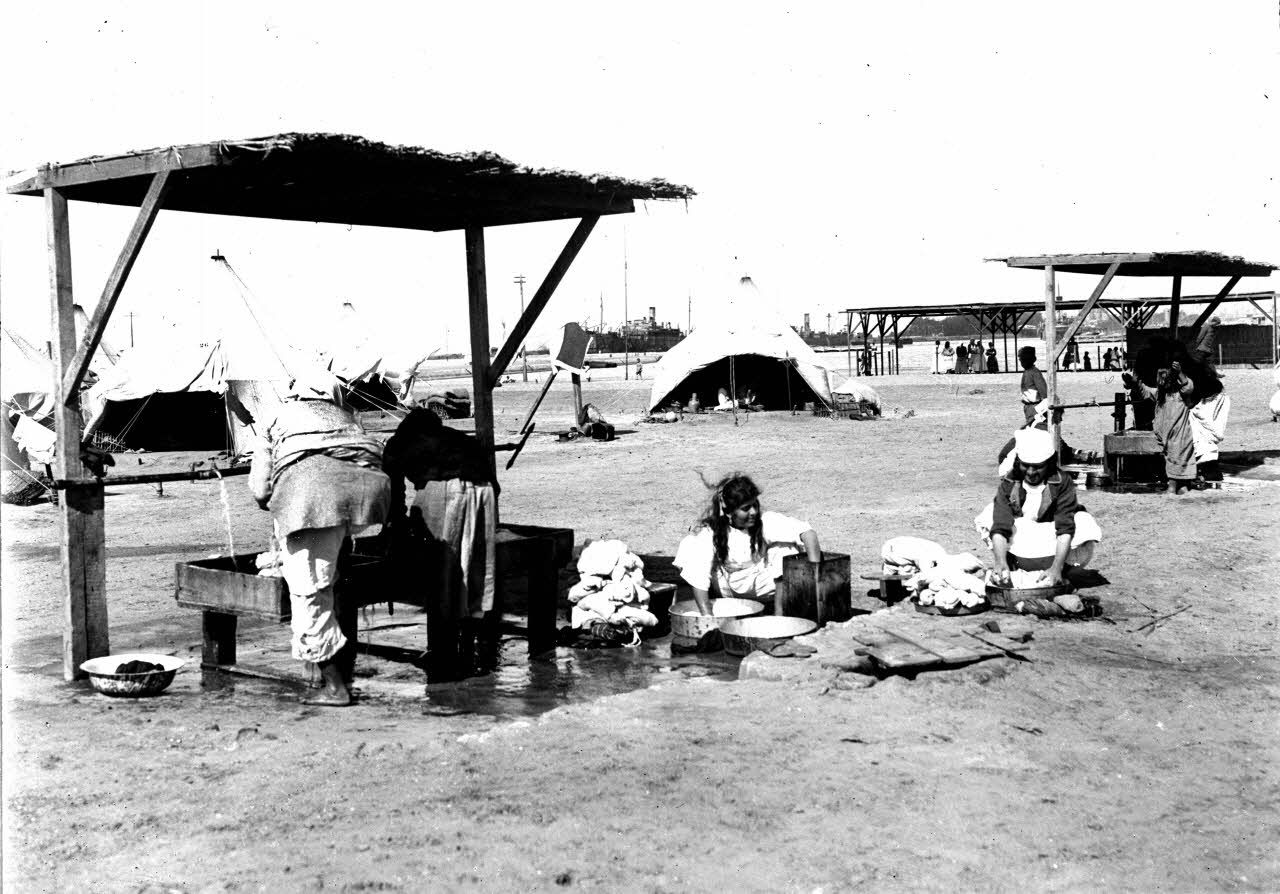 Port-Saïd. Camp de réfugiés arméniens. Femmes au lavoir. [légende d'origine]