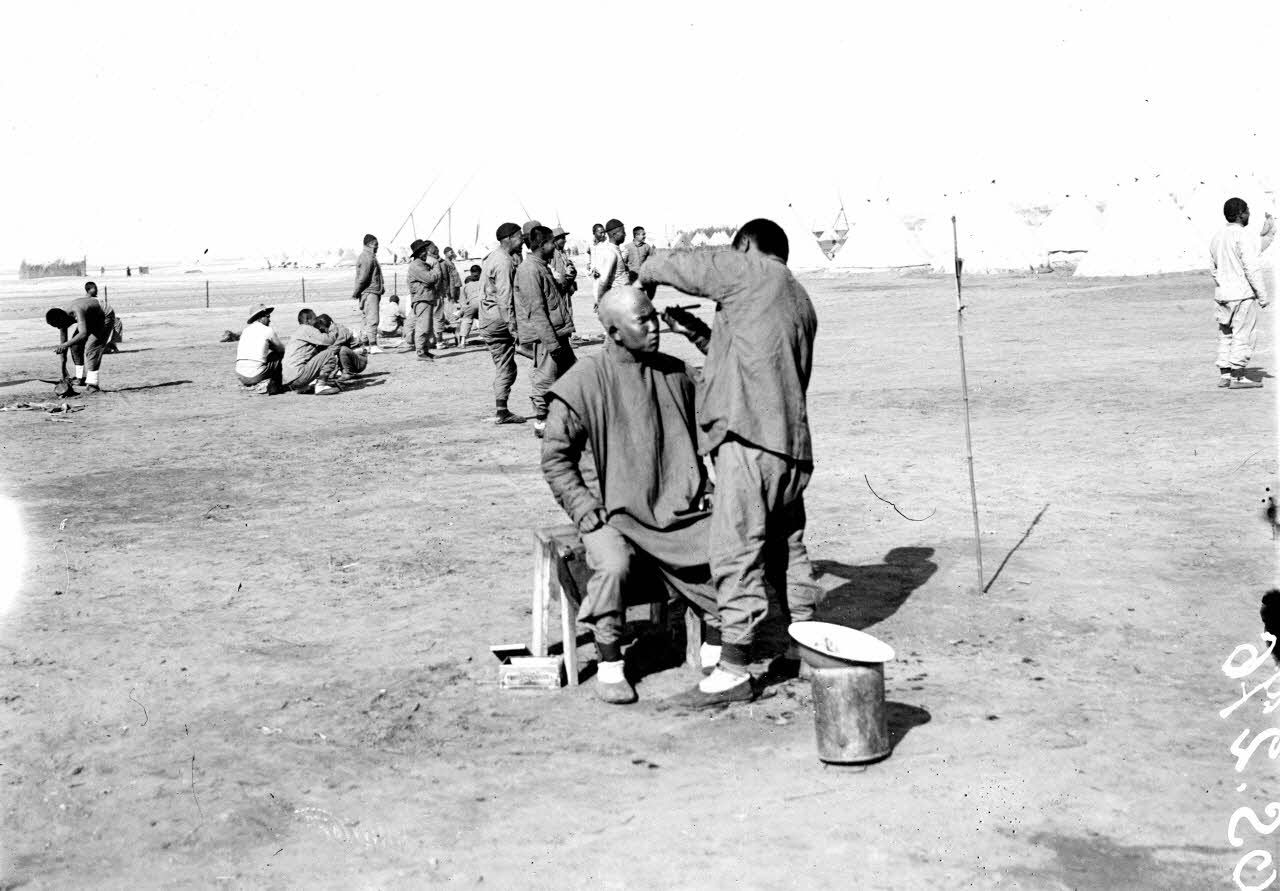Port-Saïd. Camp des Chinois. Le coiffeur.