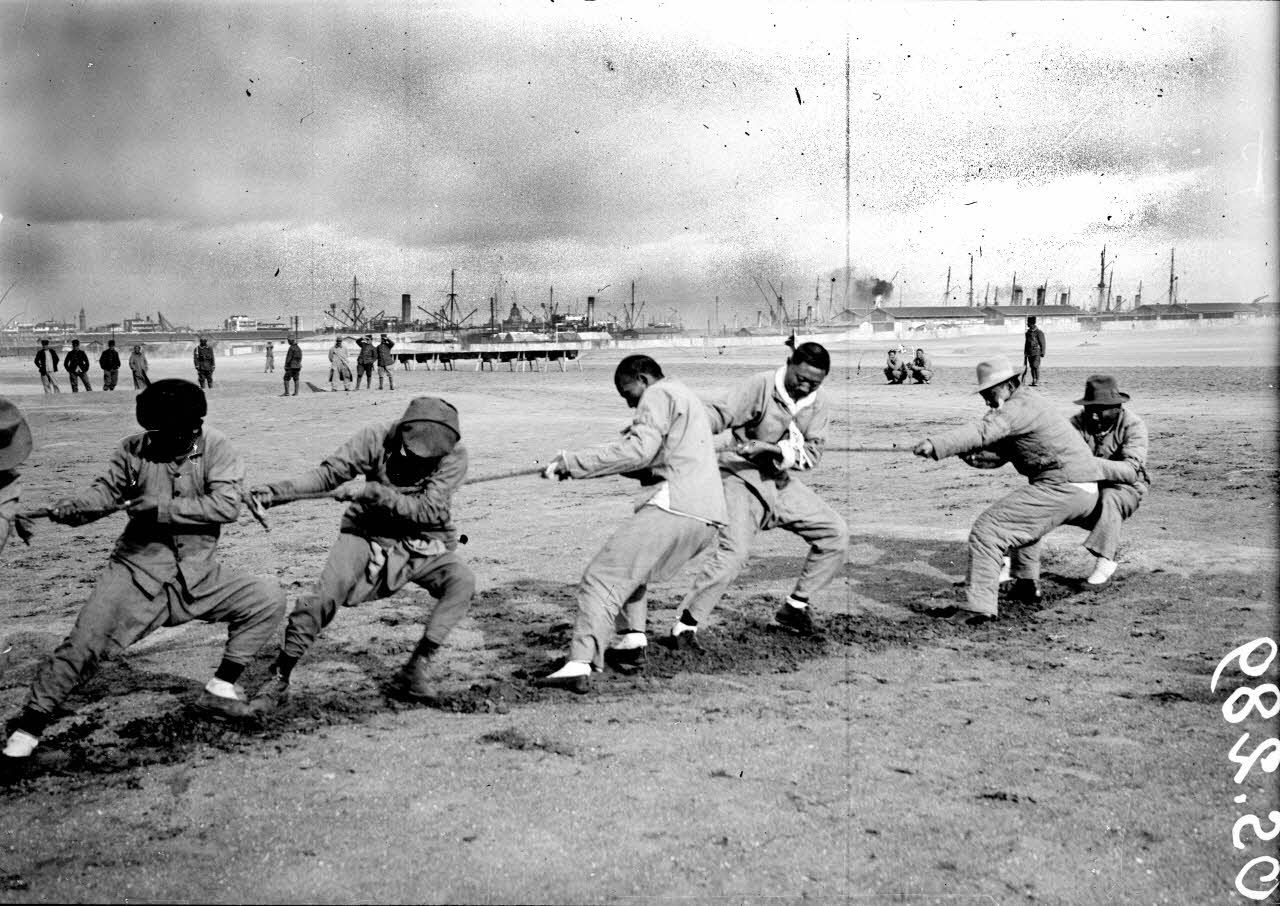 Port-Saïd. Fête au camp des Chinois. La lutte à la corde. [légende d'origine]