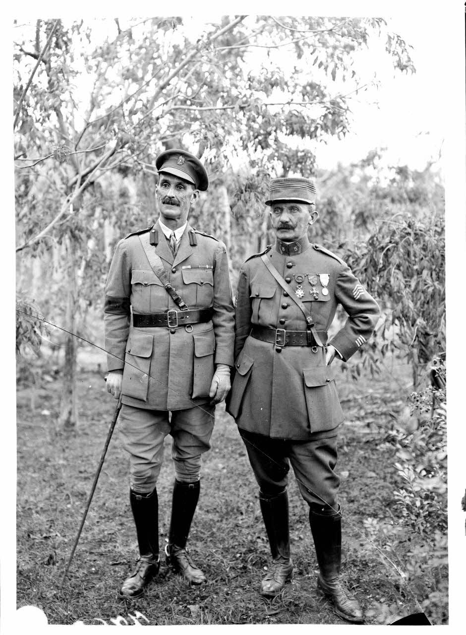 Port-Saïd. Le colonel Elgood, commandant la base anglaise, et le commandant Choin, commandant la base française. [légende d'origine]