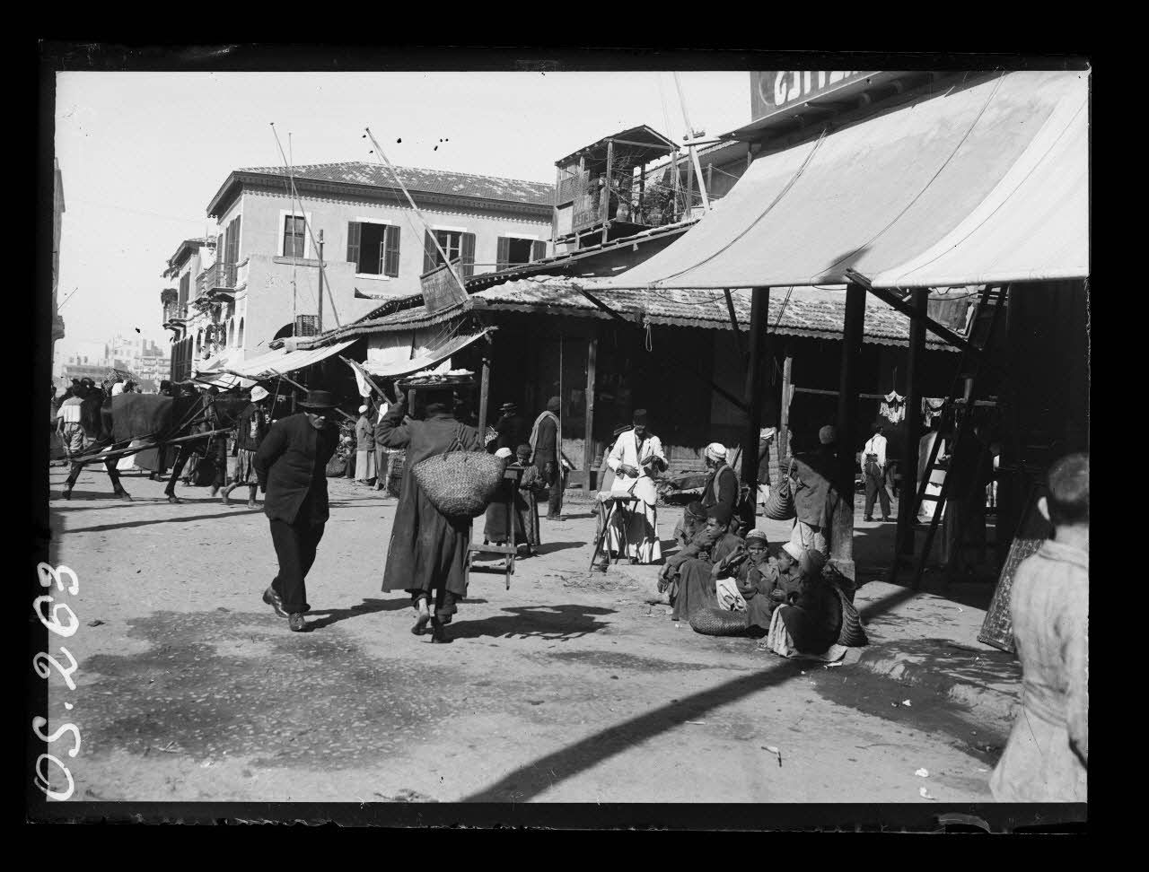 1-La ville égyptienne et ses activités : marché, marchands de canne à sucre, déchargement du poisson, cimetière, vues du consulat de France.
