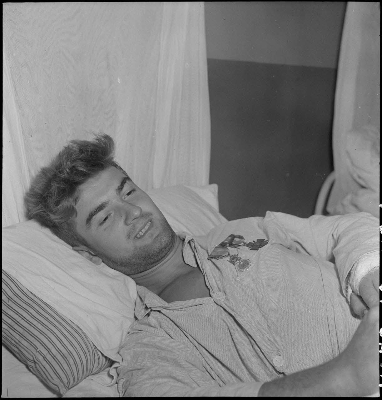 Portrait d'un sergent de la 2e BEP (bataillon étranger parachutistes) d'Autriche sur un lit d'hôpital.