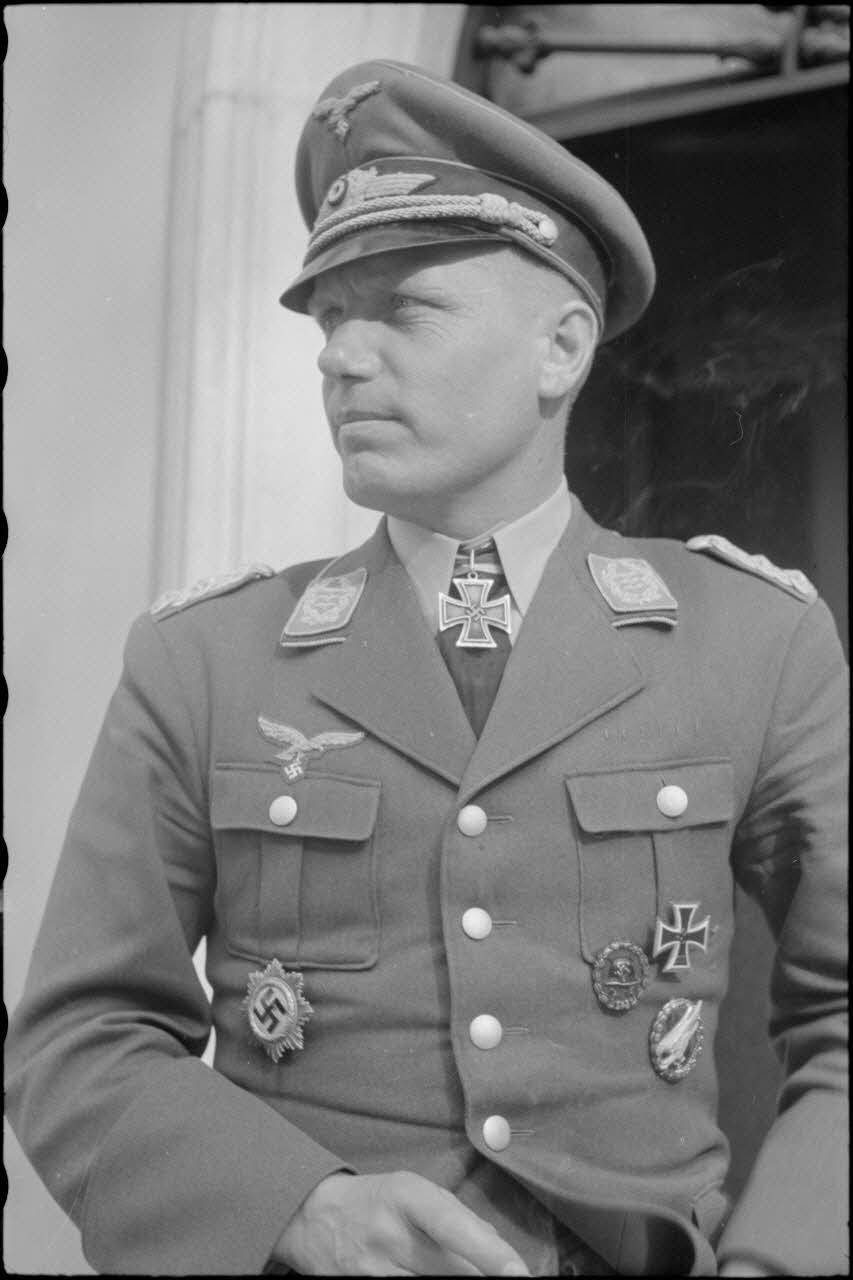 Portrait du colonel (Oberst) Karl-Lothar Schulz, commandant le 1er régiment aéroporté allemand (Fallschirmjäger-Regiment 1).