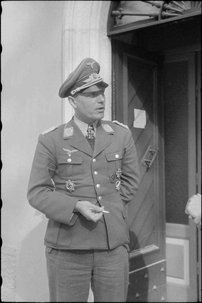 Portrait du colonel (Oberst) Karl-Lothar Schulz, commandant le 1er régiment aéroporté allemand (Fallschirmjäger-Regiment 1).