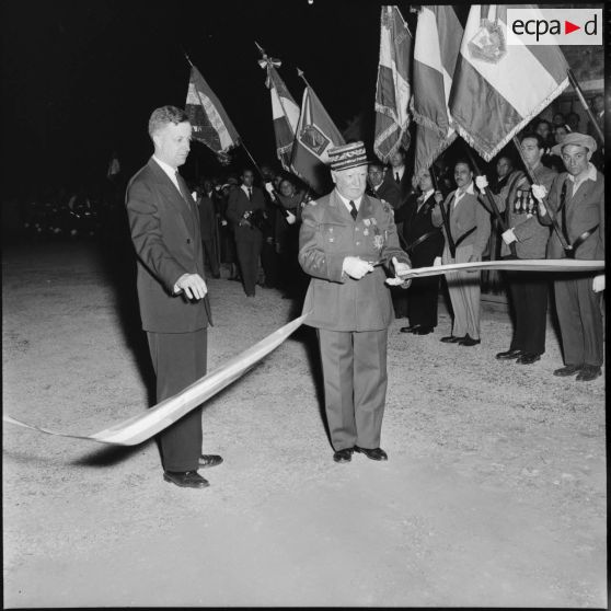 Le général de Monsabert coupe le ruban lors de l'inauguration de la rue du 3e DIA (division d'infanterie algérienne).