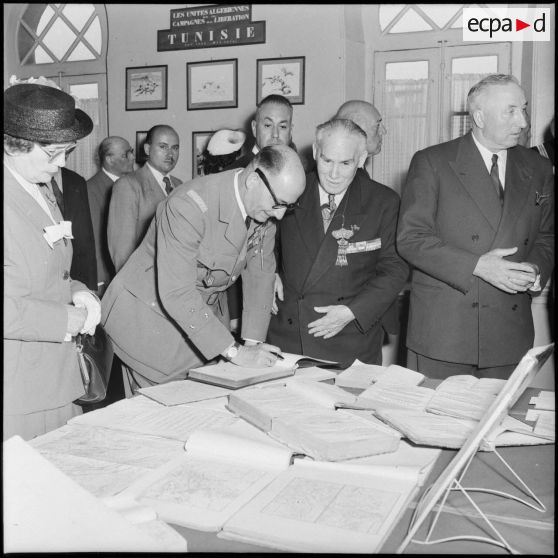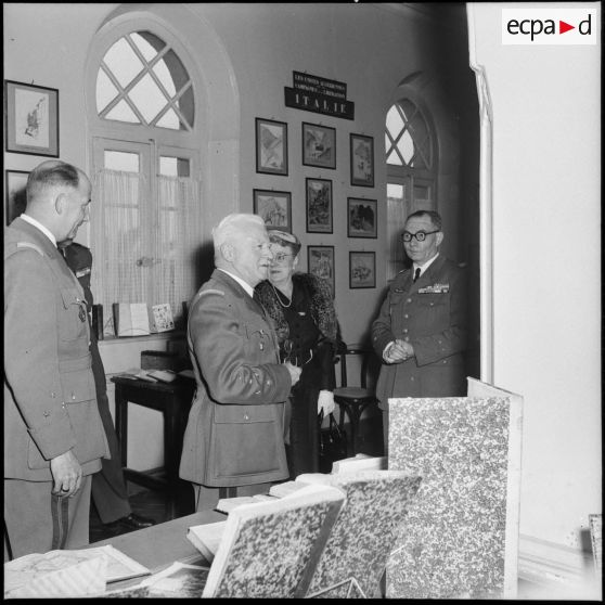 Le général de Monsabert visite la salle de la Libération au cercle mess des officiers à Alger.