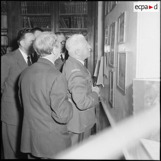 Le général Monsabert visite l'exposition des tableaux de Roger Jouanneau-Irriera.