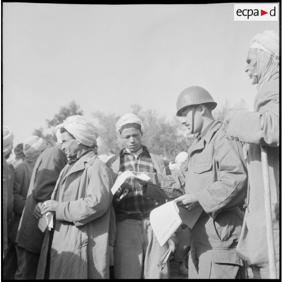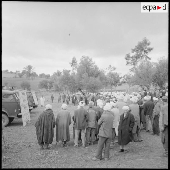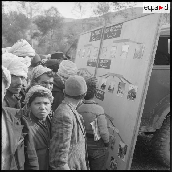 La Compagnie de haut-parleurs et de tracts dans le village de Gallieni, au nord de Guelma, région de Constantine.