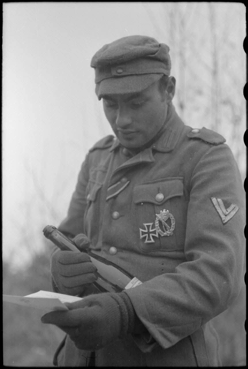 Des fantassins de la Luftwaffe viennent de recevoir des cadeaux (pain, alcool, rations spéciales).
