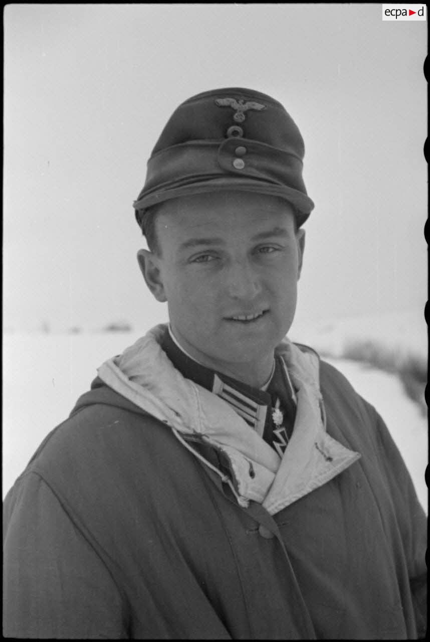 Portrait d'un commandant (Major) Josef-Georg Mulzer, titulaire de la croix de chevalier de la croix de fer et des feuilles de chêne (obtenue le 10/01/1944).