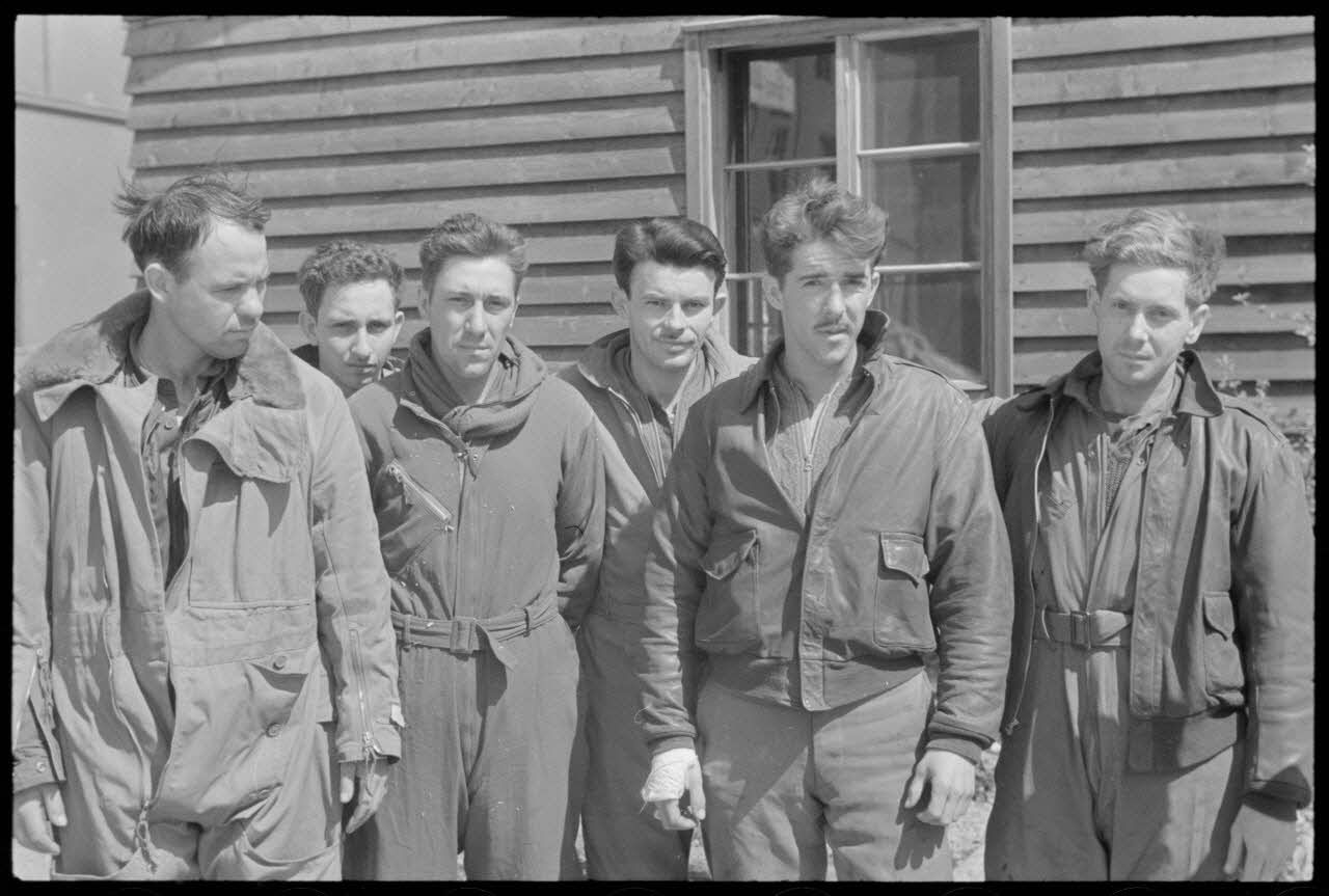 Portrait d'un équipage de bombardier de l'armée de l'air américaine (USAAF) rescapé du crash de leur appareil.