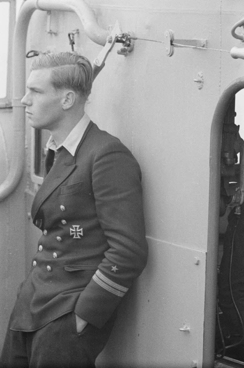 Portrait d'un Oberleutnant zur See à bord d'un dragueur de mines de la Kriegsmarine.