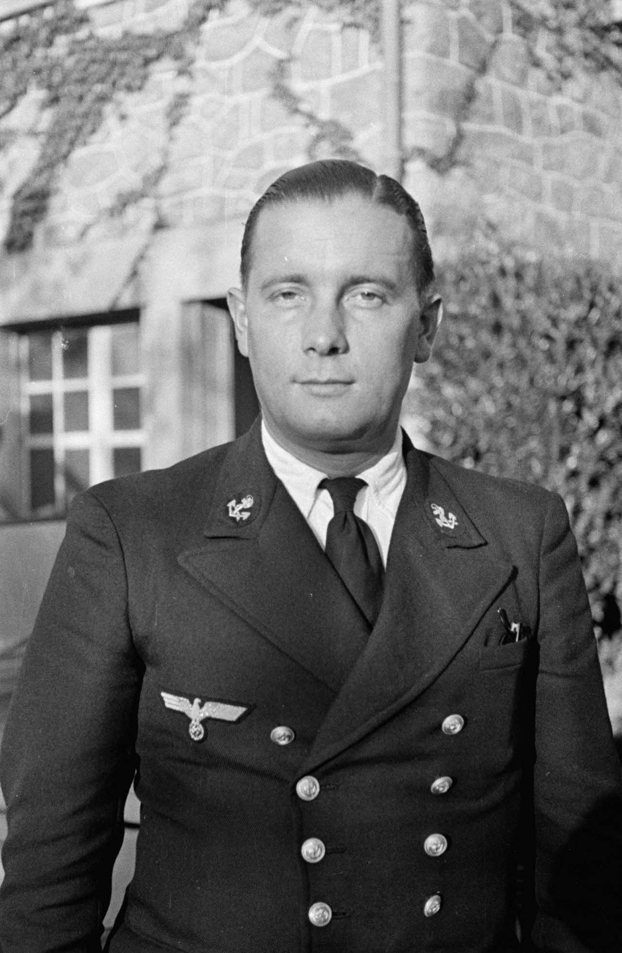 Le lieutenant Heinrich Schwich portant la barbe, après une mission à bord du sous-marin U-552 commandé par Erich Topp.
