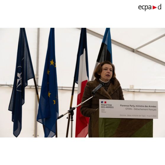 La ministre des Armées Florence Parly prononce un discours à Ämari, en Estonie.