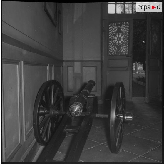 Un canon de bronze exposé dans le hall d'entrée de la salle d'honneur du 1er régiment de tirailleurs algériens (RTA) à Blida.