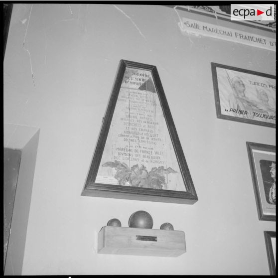 Sur le mur de la salle Maréchal Franchet d'Esperey à Blida, une liste des officiers généraux ayant dirigés les tirailleurs algériens est exposée.