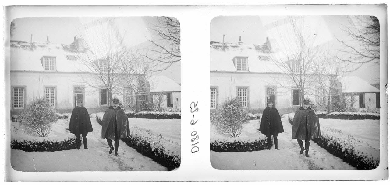 Archives photographiques du lieutenant Emile Coquibus affecté au 6e régiment d'infanterie coloniale (RIC) : loisirs et formation militaire (1906-1907). Après près de quatre années passées en Afrique, en Haute-Guinée (8 février 1901 - 16 janvier 1905), Emile Coquibus revient en France et suit plusieurs formations militaires. L'état de ses services indique qu'il a accompli un stage aux Etablissements Hotchkiss du 31 janvier 1906 au 16 février 1906. Affecté au mois de juillet 1906 au 6e RIC, il quitte ensuite cette unité le 24 mai 1907 pour rejoindre le 4e régiment de tirailleurs sénégalais (voir reportage D180-7). Le lieutenant Coquibus réalise une partie de ces photographies dans le Finistère lorsqu'il est cantonné à la caserne du quartier de Pontanézen, à Brest, au cours de l'hiver 1906-1907.