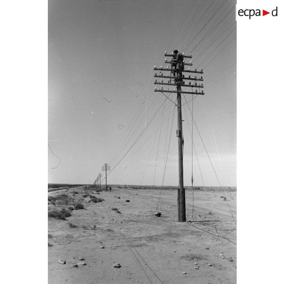 Des soldats allemands travaillent sur des lignes télégraphiques.