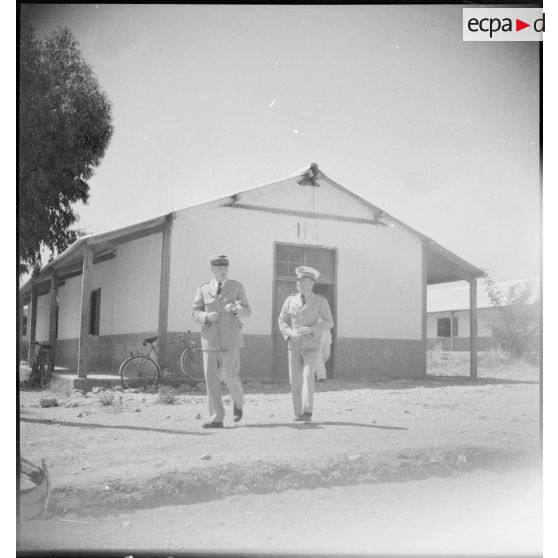 L'officier d'ordonnance et le pilote discutent à côté de l'avion.