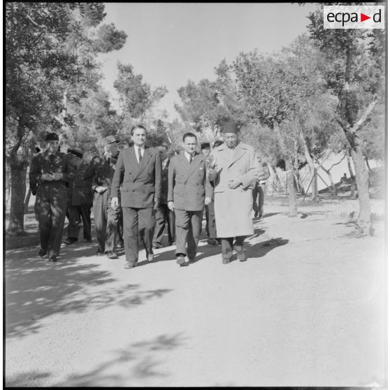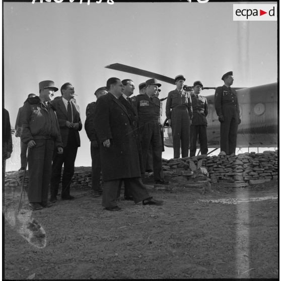 Vue de MM. Bourgès-Maunoury et Lejeune lors d'un déplacement en Algérie.
