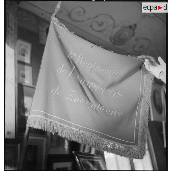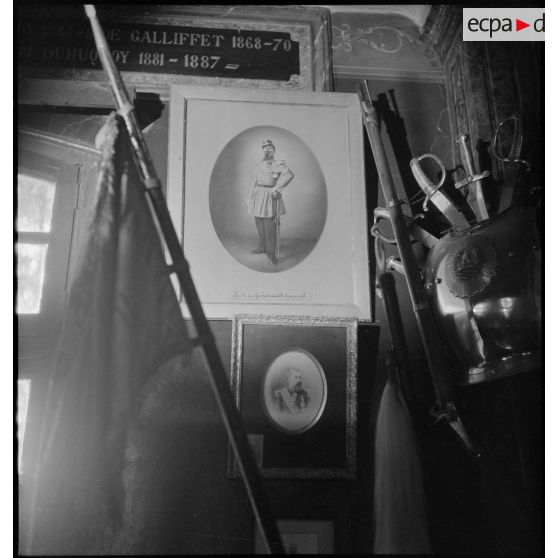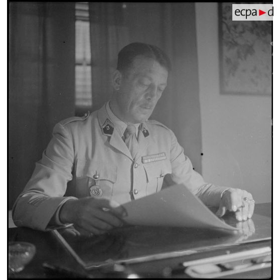 Portrait du colonel de Bazelaire de Boucheporn, chef de corps du 3e RCA (régiment de chasseurs d'Afrique) dans son bureau.