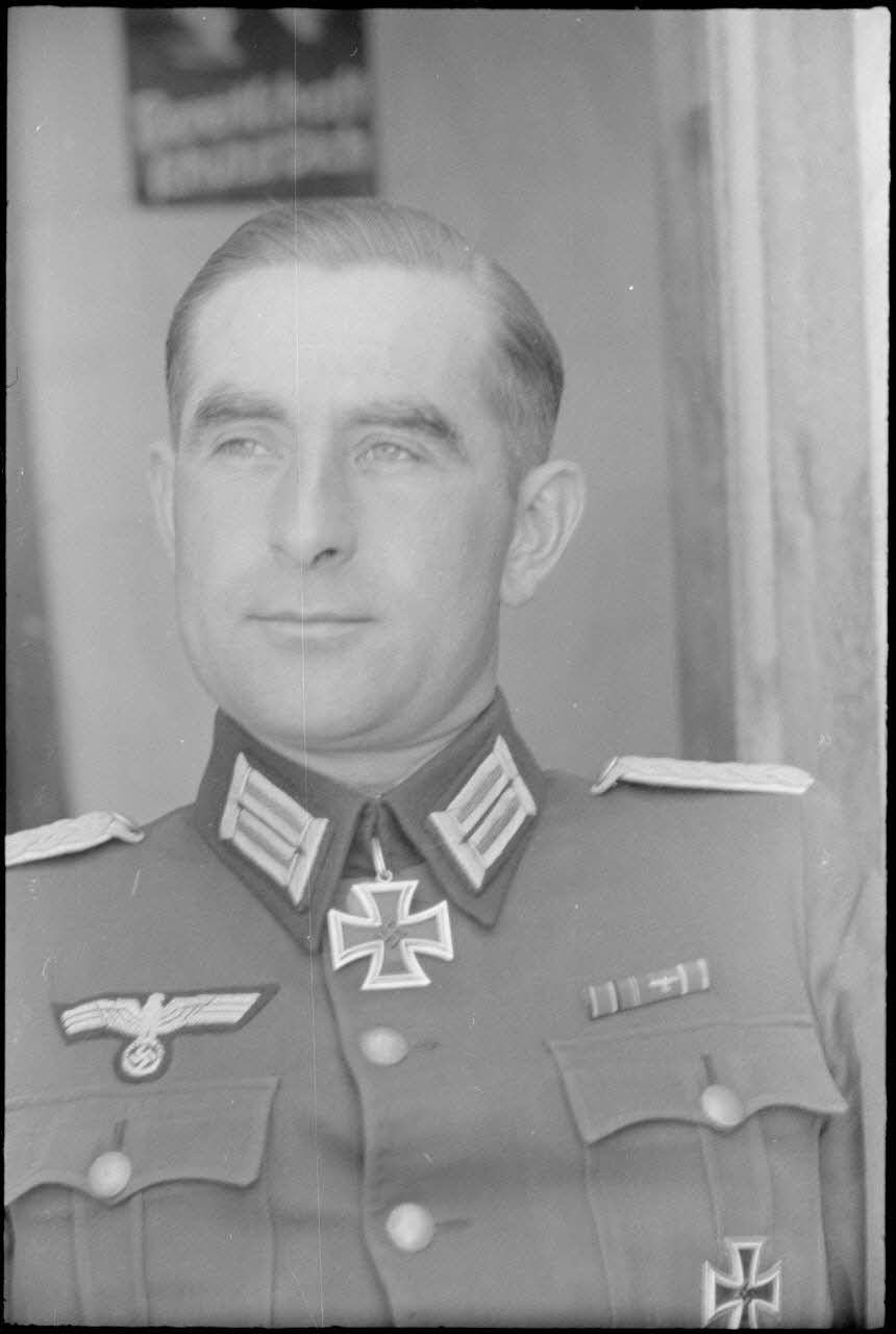 Portrait du commandant (Major) Hans Müller, décoré de la croix de chevalier de la croix de fer (Ritterkreuz).