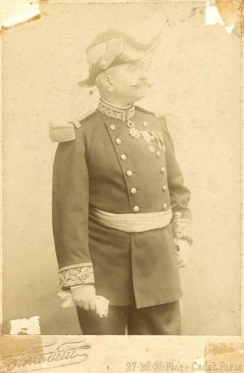 Album de photographies retraçant les carrières du général Alexandre Dumas (1845-1912) et de son fils, le capitaine Lionel Dumas. Parcours d'officiers en Indochine française, au Dahomey et au Maroc entre 1882 et 1918.
