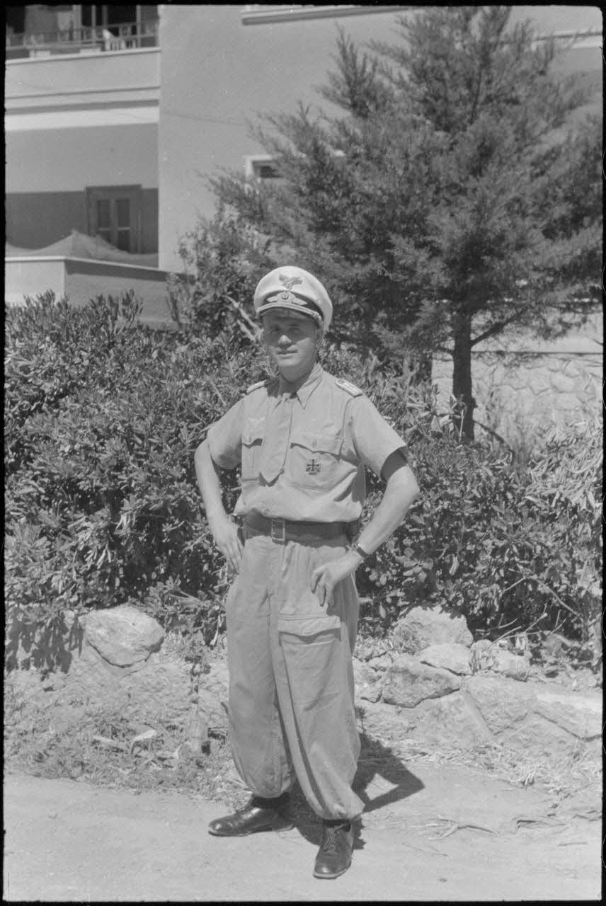 Portrait du lieutenant (Oberleutnant) Glatz devant une villa réquisitionnée.
