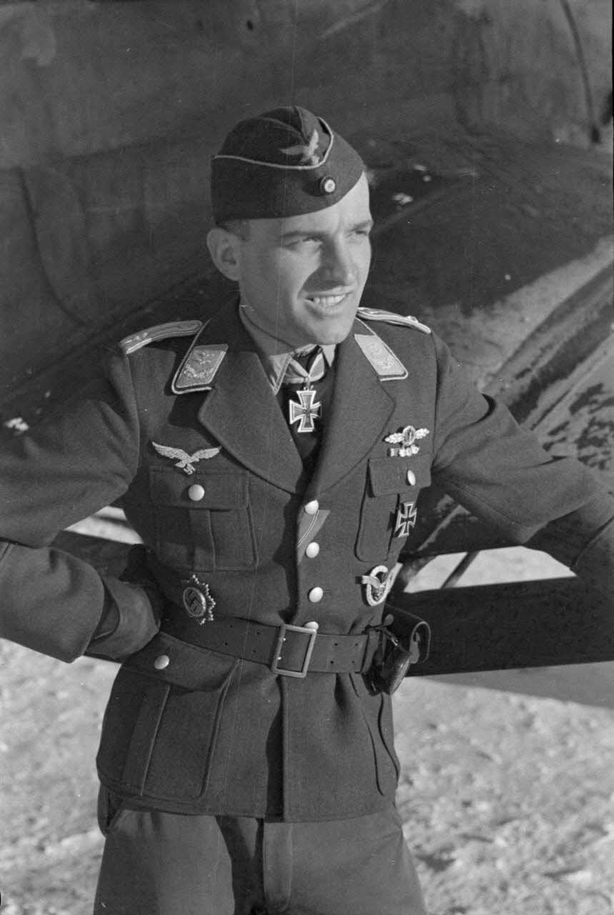 Portrait du lieutenant (Oberleutnant) Hans-Ulrich Rudel, du Sturzkampfgeschwader 2 Immelmann, décoré de la croix de chevalier de la croix de fer (Ritterkreuz).